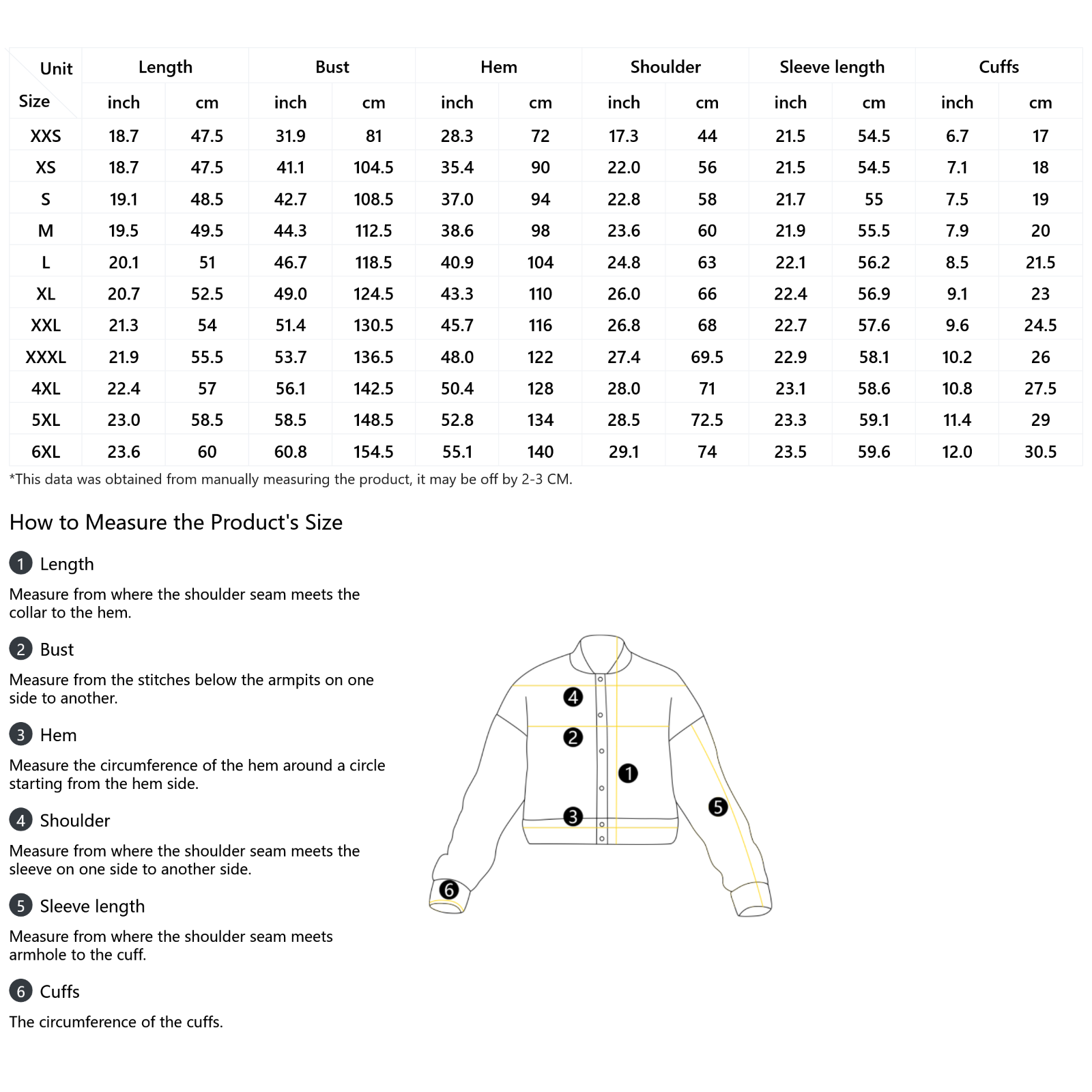 The measurement data of this size is obtained by laying clothes flat. Due to different measurement methods, it is normal that the error is within 2-3cm.